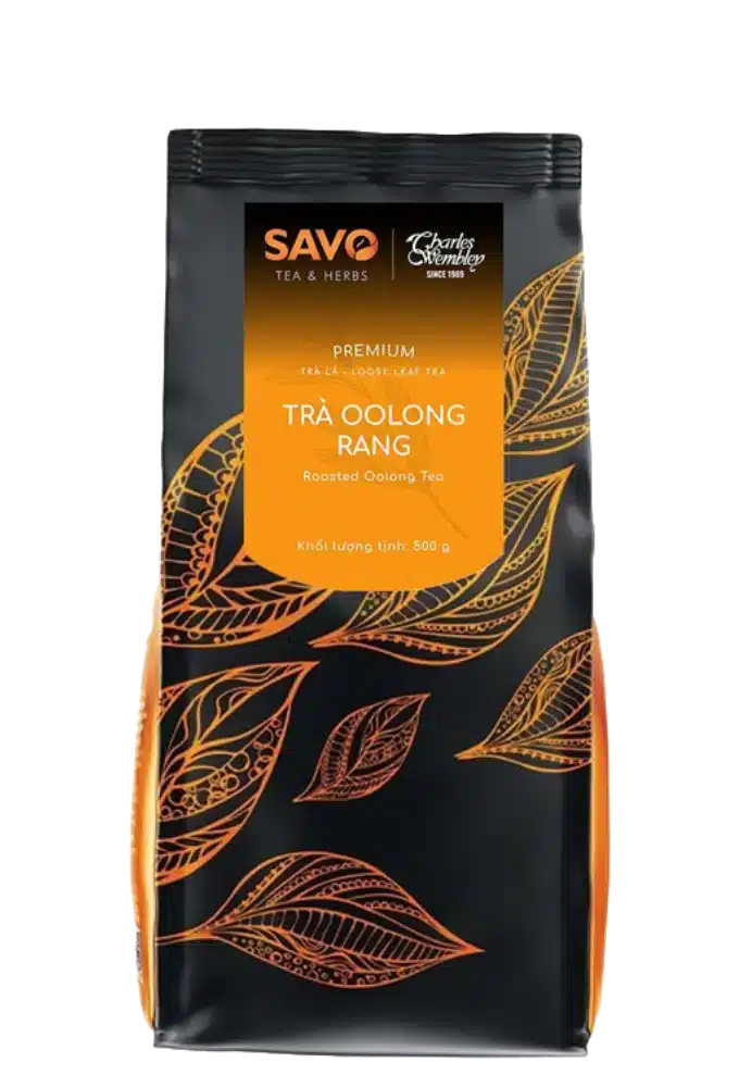 Trà Oolong Rang Premium Savo ft Charles Wembley là dòng trà oolong cao cấp, được chế biến từ những búp trà non tuyển chọn, rang thủ công để tạo nên hương vị đậm đà, thơm nồng đặc trưng. Là sản phẩm của sự hợp tác giữa SAVO Tea & Herbs – thương hiệu trà Việt Nam với hơn 15 năm kinh nghiệm, và Charles Wembley – đơn vị hàng đầu trong lĩnh vực F&B, trà oolong rang này được thiết kế dành riêng cho pha chế trà sữa, trà trái cây hoặc thưởng thức nguyên bản. Đạt chuẩn quốc tế ISO 22000 và HACCP, sản phẩm là lựa chọn lý tưởng cho các quán cà phê, trà sữa và những người yêu trà muốn trải nghiệm hương vị thượng hạng.